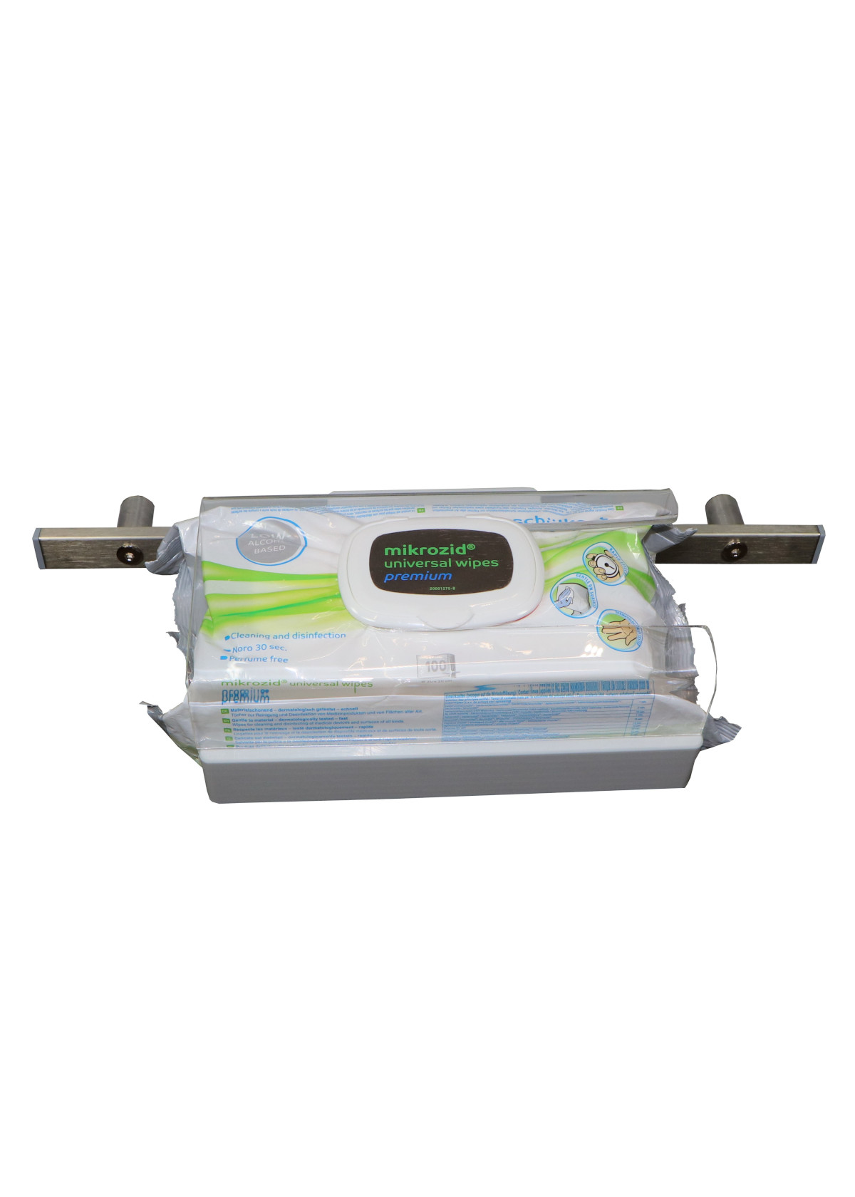 Mit Hilfe der Flowpack-Halterung lassen sich Tücher ganz einfach und hygienisch entnehmen. Sie sind immer griffbereit und an der selben Stelle wiederzufinden